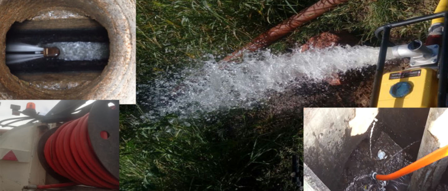 Limpieza por medio de hidrojet de alta presión para el lavado total de cañería, colectores, codos y cámaras.